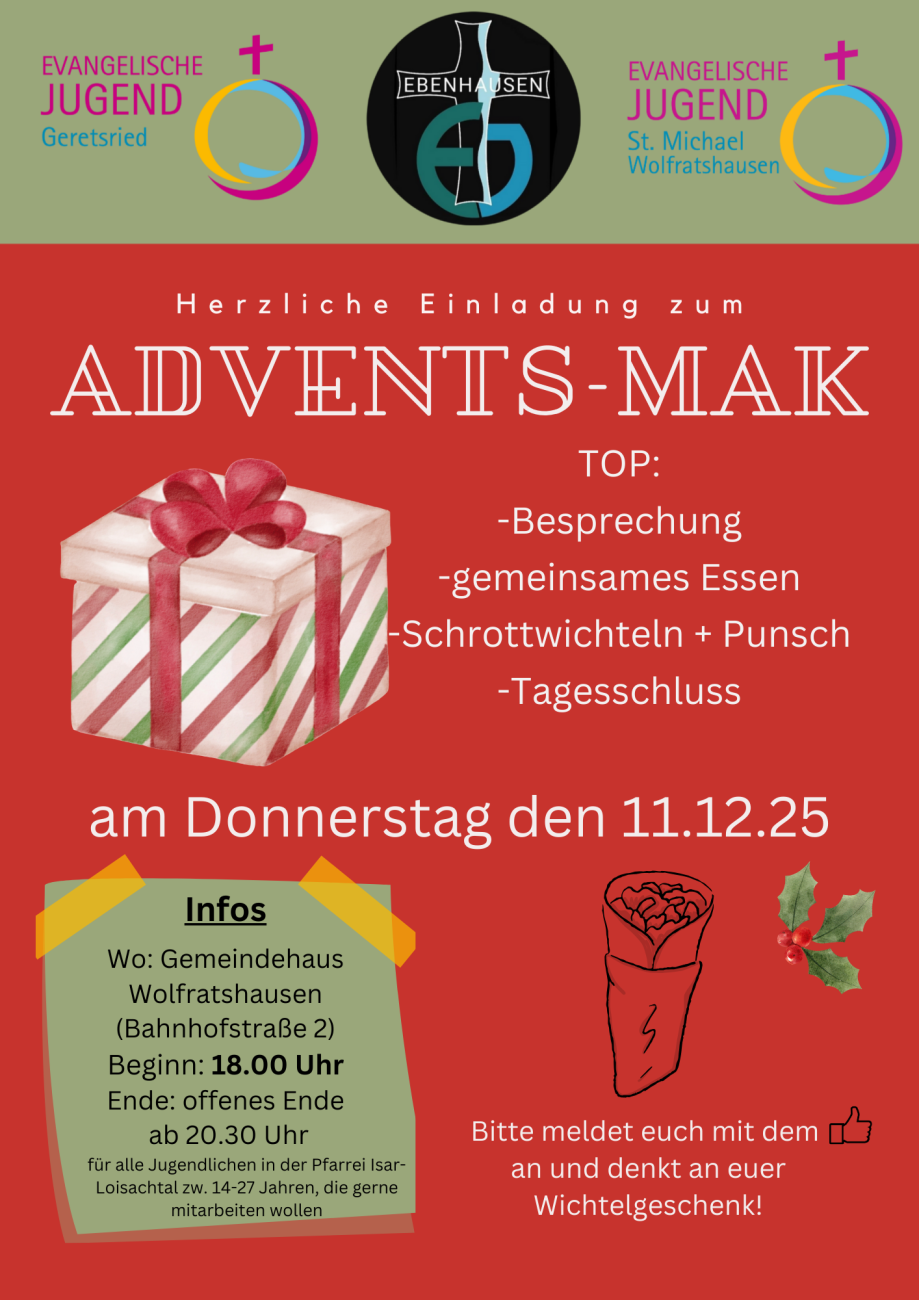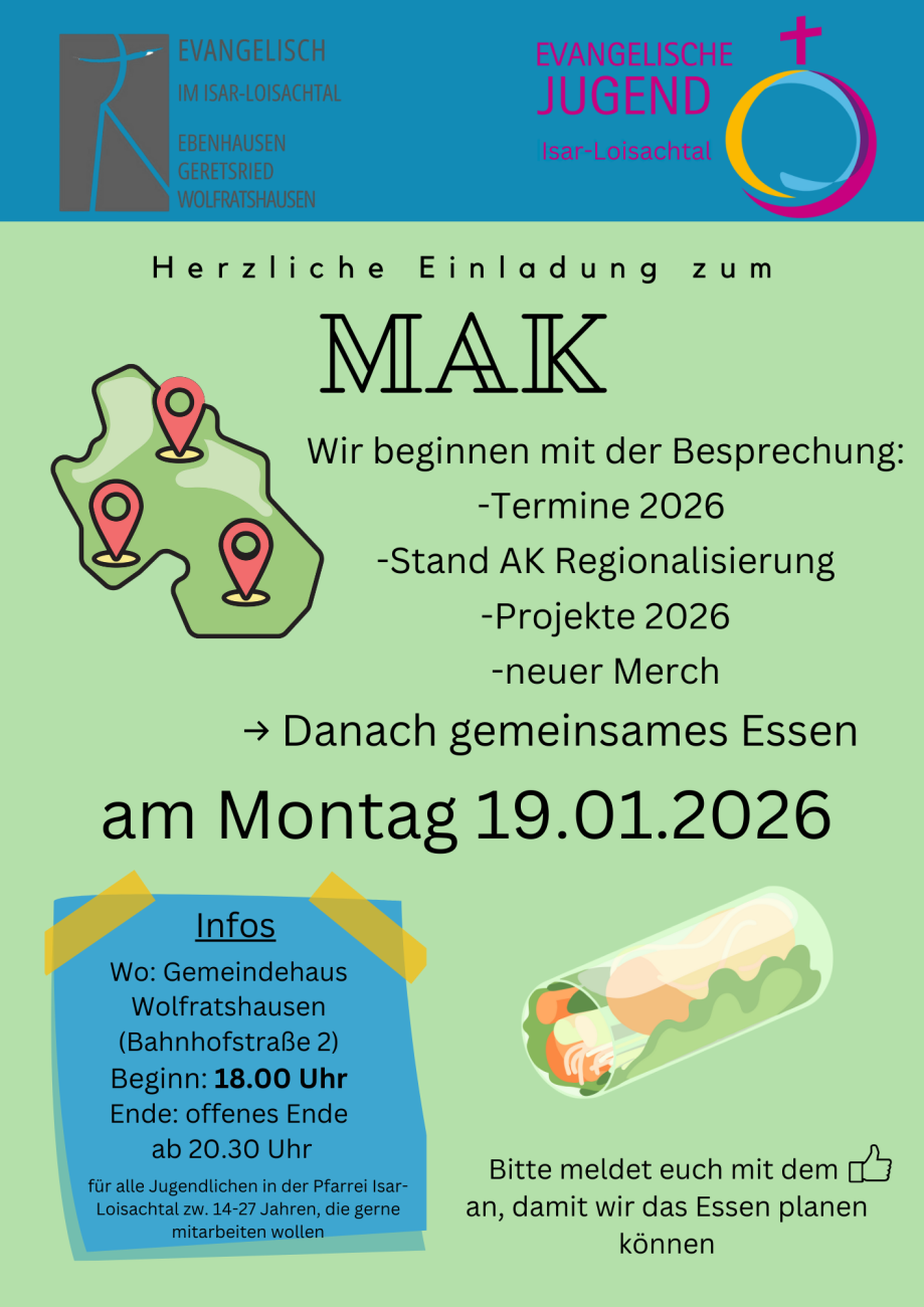 Zum MAK treffen sich alle Jugendleiter*innen aus der Pfarrei einmal im Monat. Wir essen gemeinsam und besprechen die kommenden Jugendaktionen.